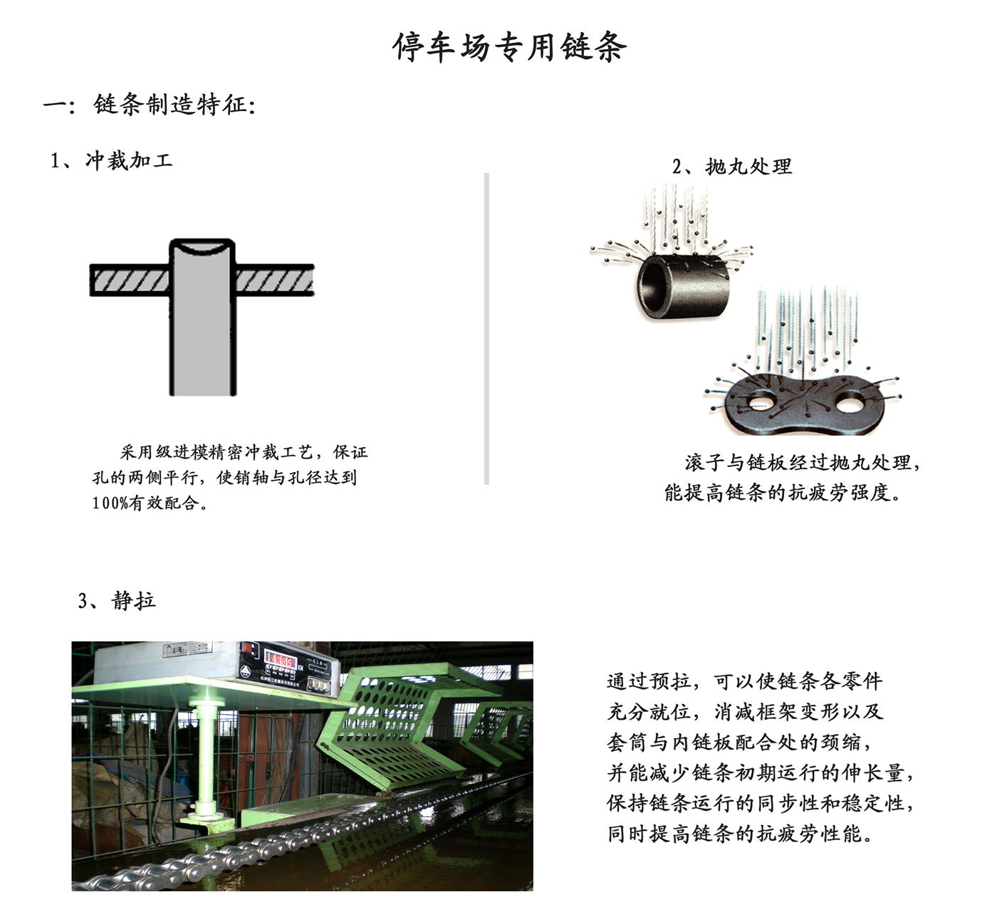 ห่วงโซ่ของอุปกรณ์ที่จอดรถสามมิติอัจฉริยะคือการส่งสัญญาณขั้นที่สองของตัวหลักของอุปกรณ์จอดรถ มาตรฐานการดำเนินการคือ JB/T11079-2011 ลักษณะการใช้งานของโซ่: ความสามารถในการรองรับขนาดใหญ่, ความต้านทานแรงดึงสูง (ความแข็งแรงคงที่), ความต้านทานแรงดึงขั้นต่ำคือ 10% -30% สูงกว่าโซ่ลูกกลิ้งความแม่นยำทั่วไป ', ดัชนีการบิดเบือน, ความแม่นยำของความยาวของโซ่, ความต้านทานต่อความล้า ฯลฯ ยังสูงกว่าโซ่ลูกกลิ้งความแม่นยำทั่วไป '