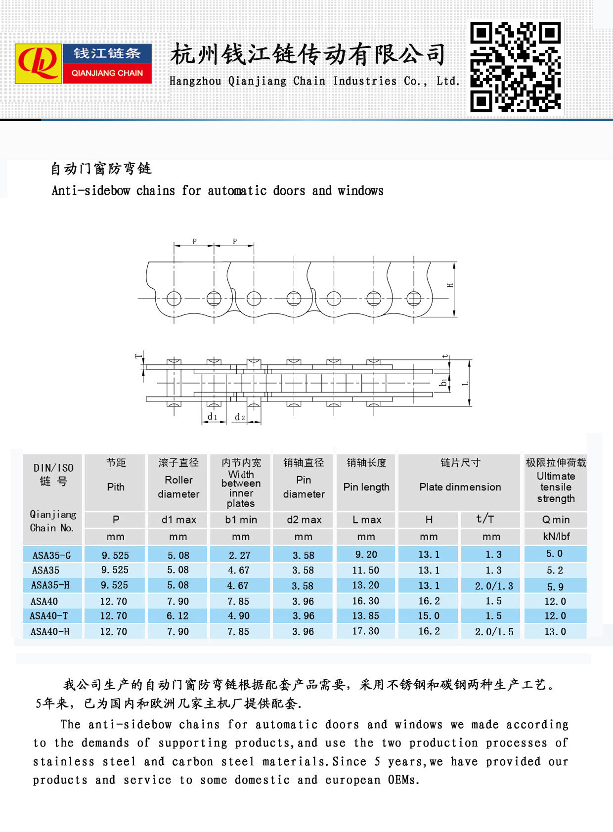 Fine workmanship Aging-resistant Anti-sidebow chains for automatic doors and windows – the solution for smooth, reliable operation of automatic doors and windows. Designed with precision and built to last, these chains are crafted using advanced materials that ensure exceptional durability and resistance to wear, even in harsh environments. Whether it's temperatures, moisture, or constant use, our anti-sidebow chains maintain their shape and strength, eliminating unwanted lateral movement (sidebow) for seamless performance.