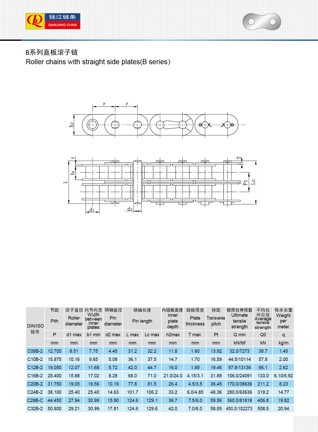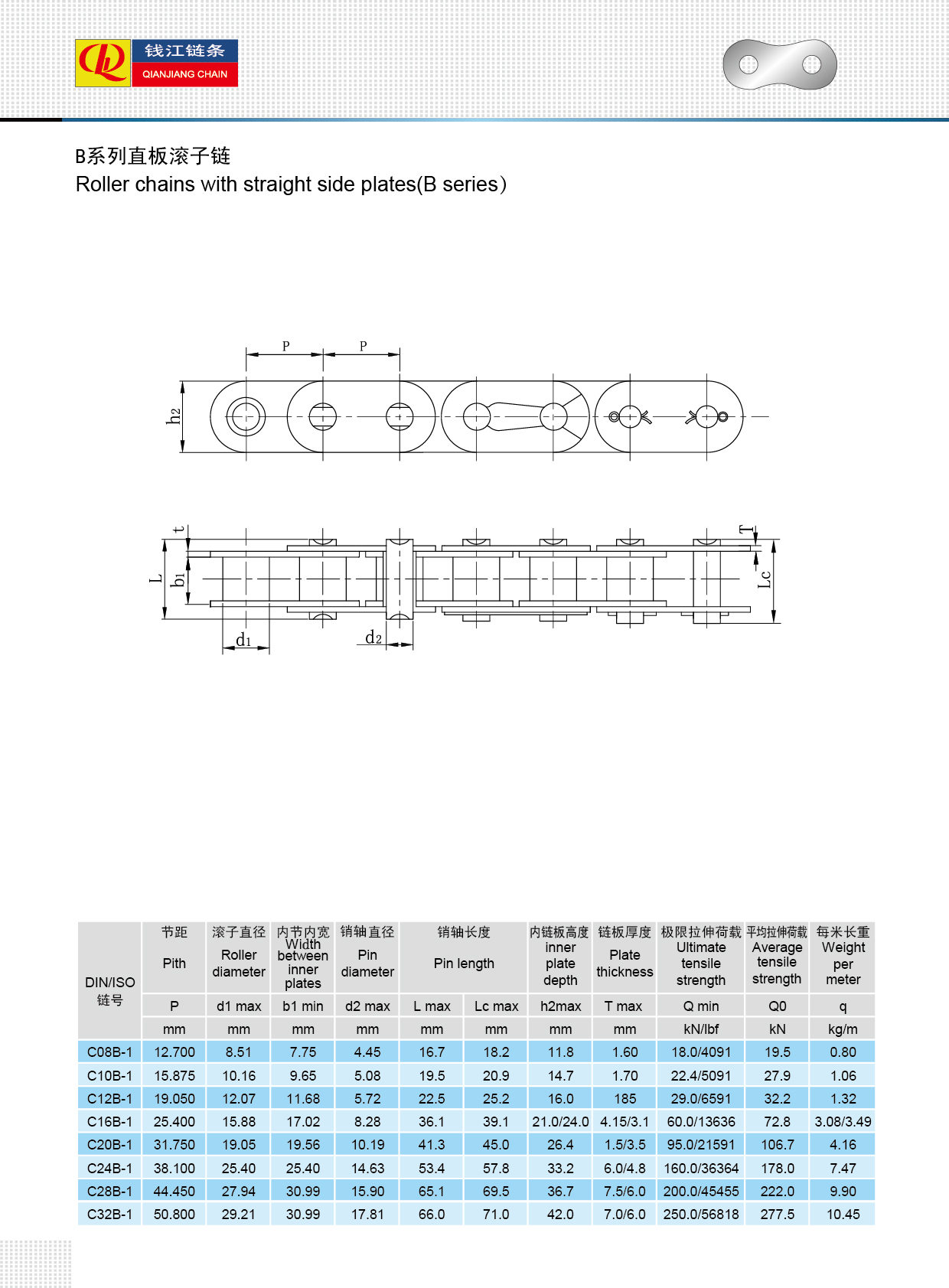 โซ่แบบลูกกลิ้งพร้อมแผ่นด้านตรง (ซีรีย์ B)