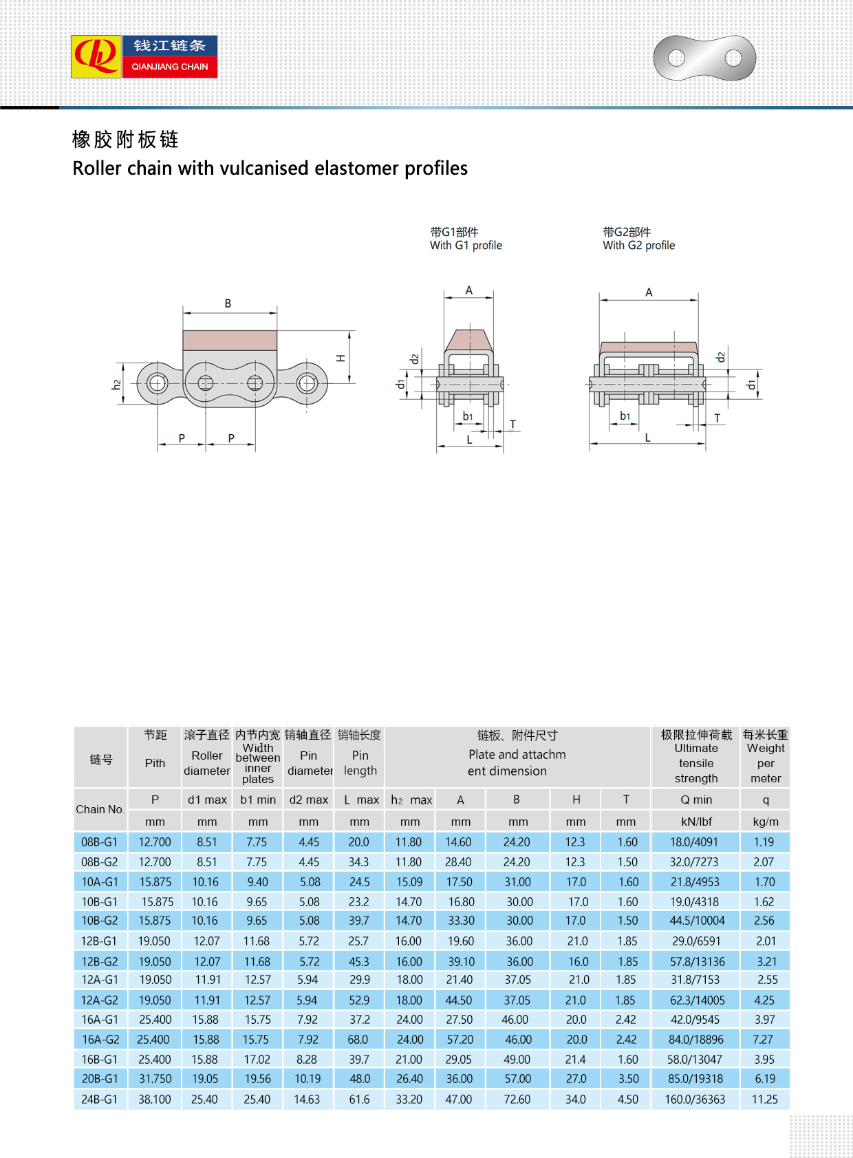 โซ่แบบลูกกลิ้งที่มีโปรไฟล์อีลาสโตเมอร์วัลคาไนซ์