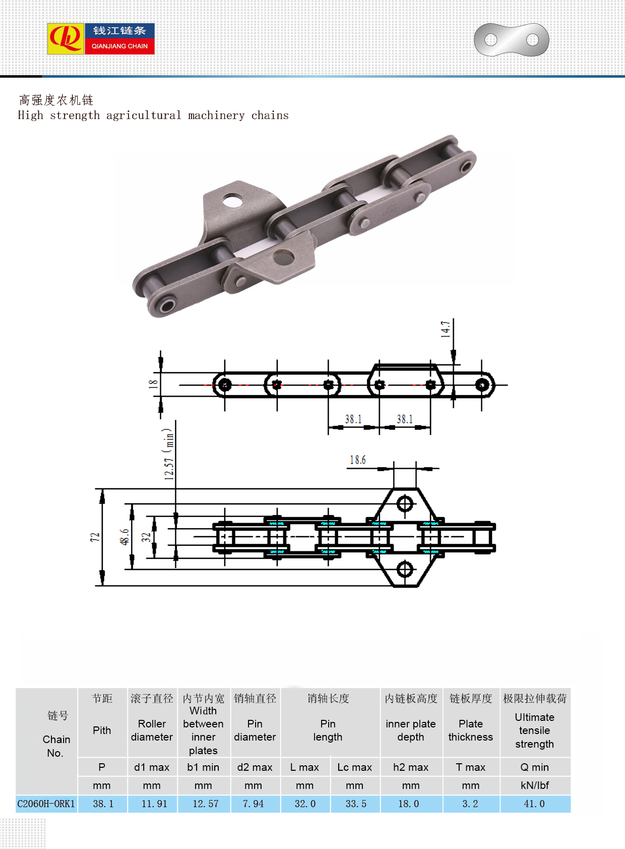 โซ่เครื่องจักรกลการเกษตรที่มีความแข็งแรงสูง